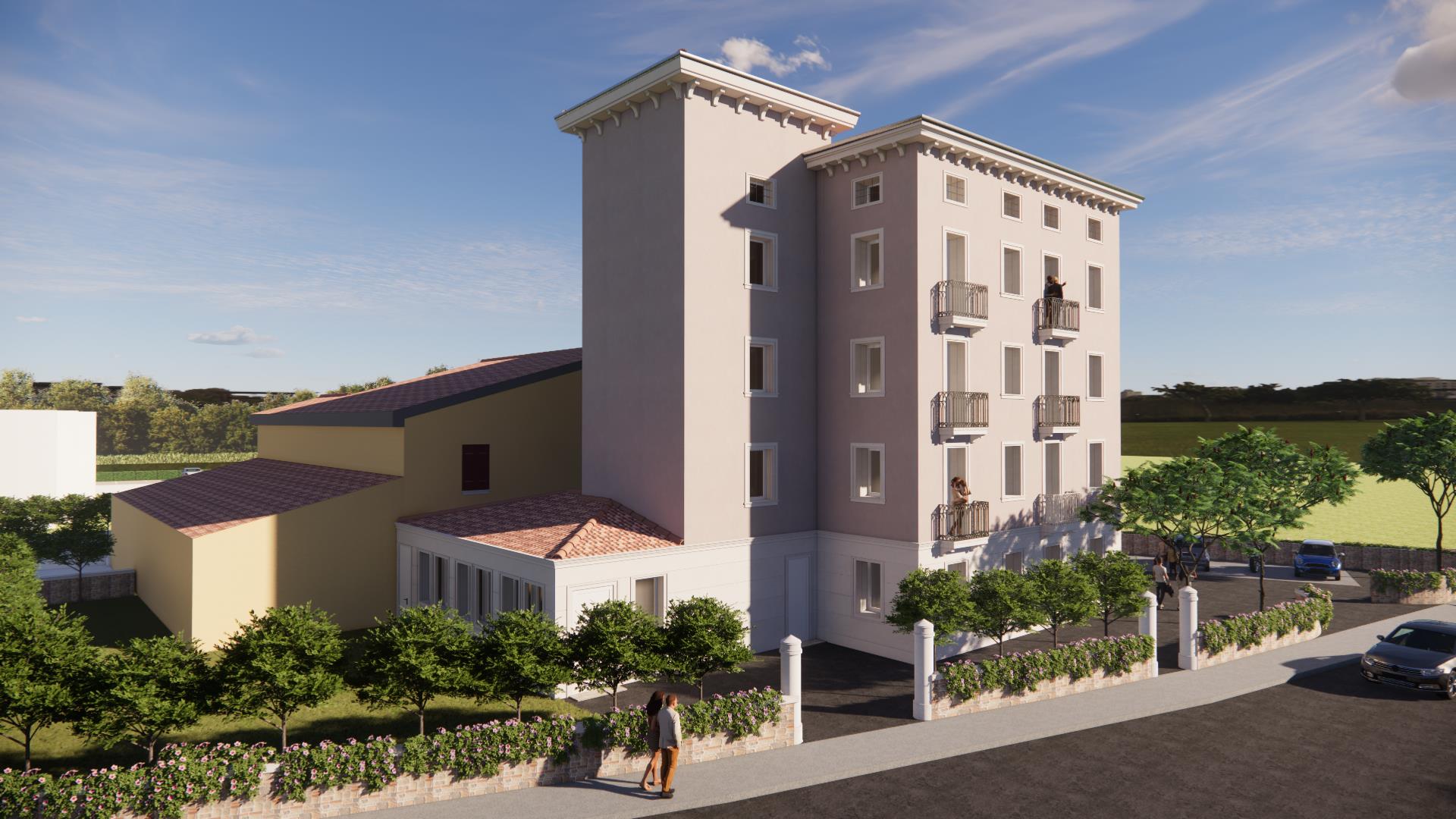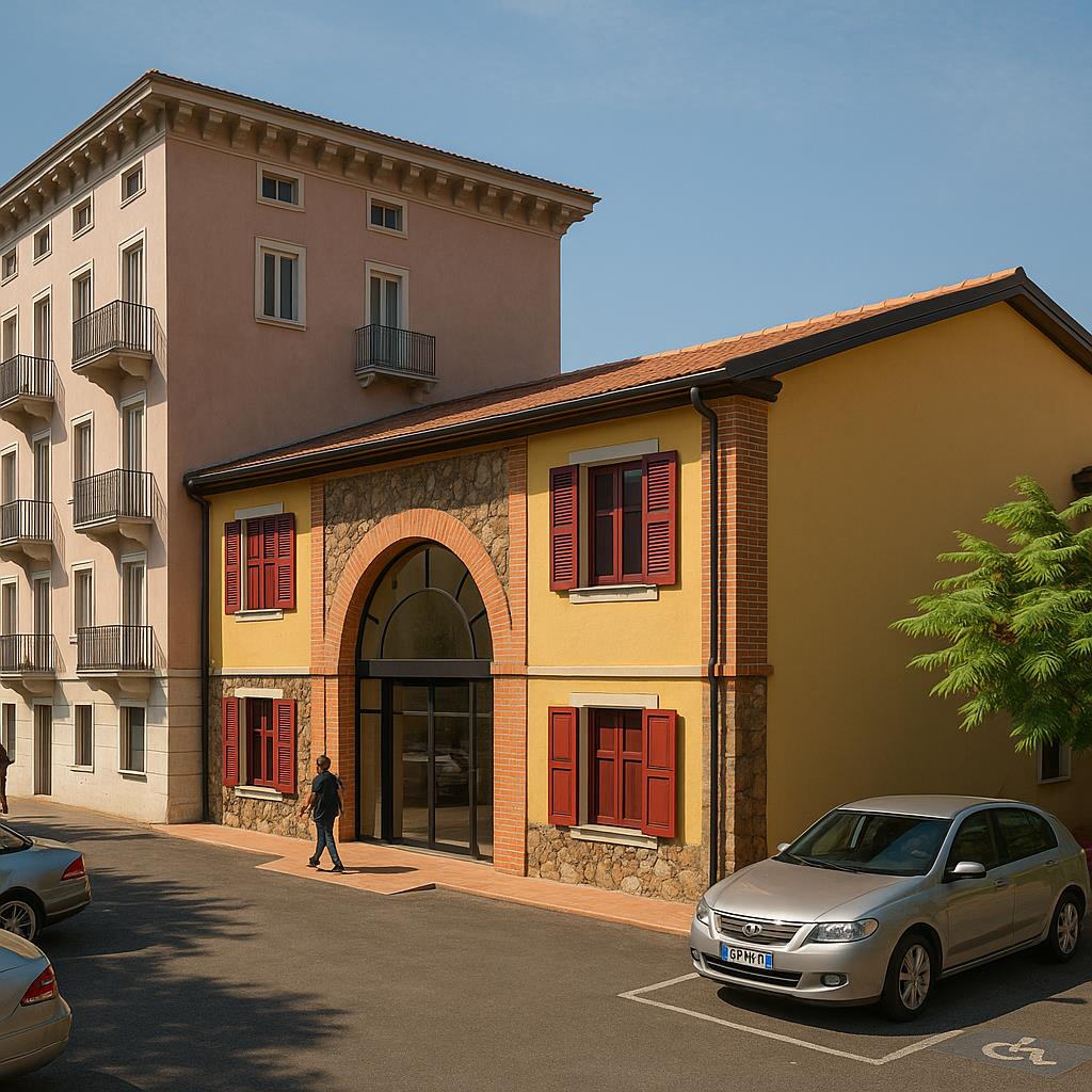 L’intervento ha riguardato l’ampliamento e la riqualificazione di un edificio storico, originariamente destinato a pizzeria e ristorante, al quale si affiancava una porzione ad uso turistico-ricettivo (albergo) da tempo in disuso.