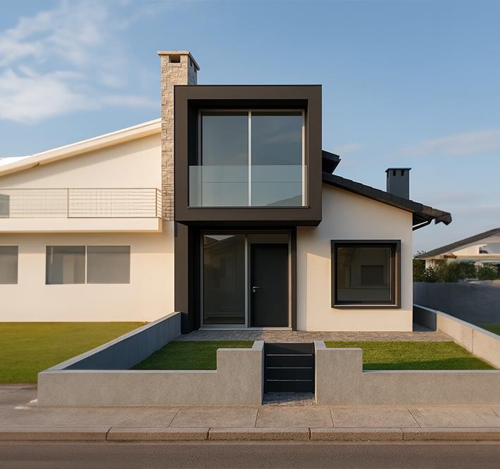 L’intervento ha previsto una revisione complessiva della facciata principale, con l’aggiunta di nuovi volumi e l’inserimento di ampie vetrate sia al piano terra che al primo piano, per garantire maggiore luminosità agli ambienti interni. Il progetto ha inoltre compreso un restyling generale dell’esterno, volto a valorizzare l’estetica dell’edificio con linee più moderne e proporzioni equilibrate.